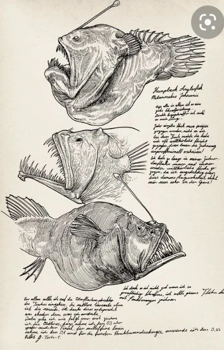 Can you PAINT a picture of a weird creature that lives in the deep dark ocean?